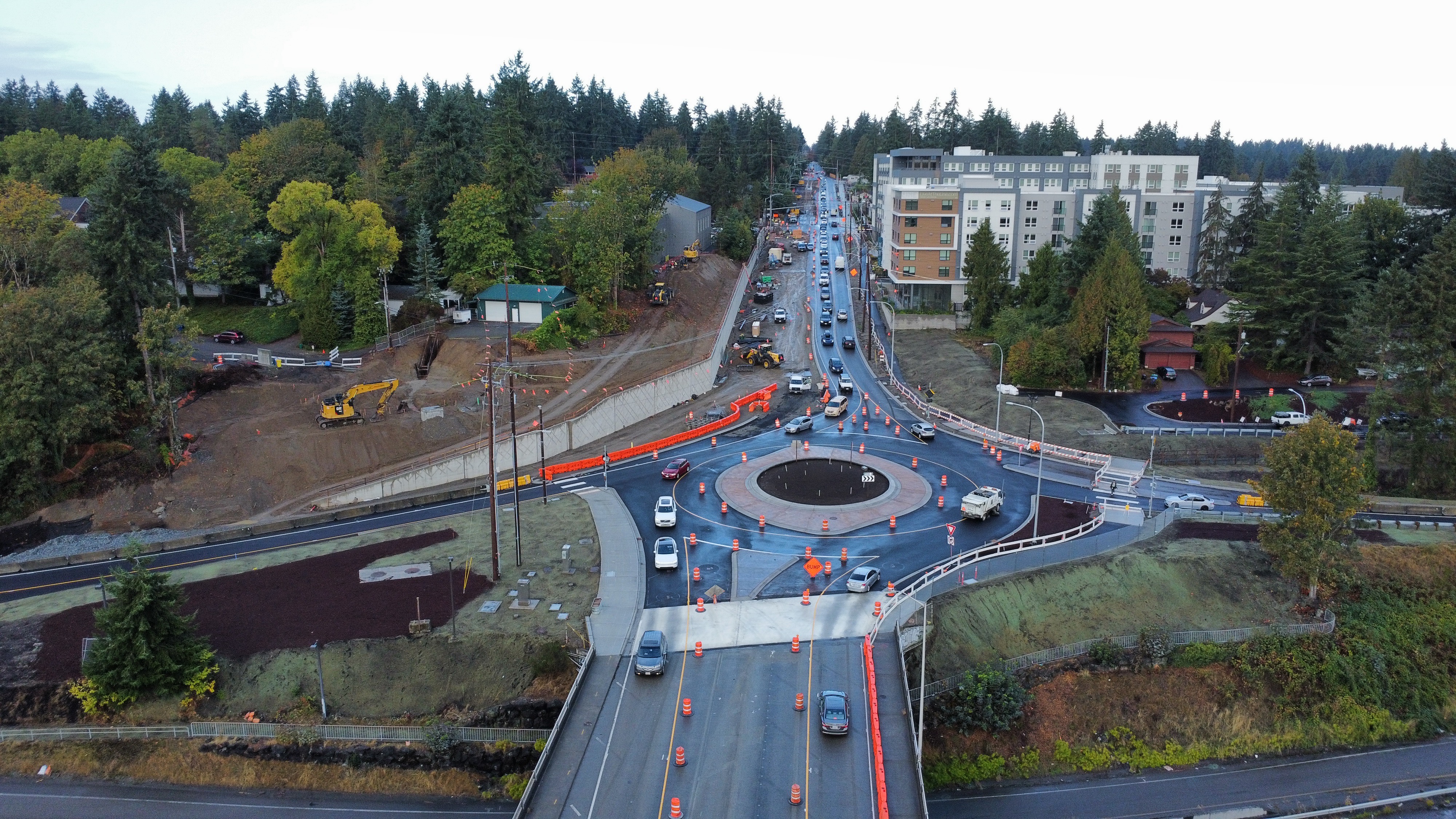 Single lane roundabout opens on the west side of N 145th Street overpass
