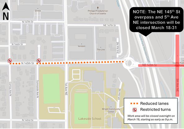 March 18-31: NE 145th Street overpass to close with 5th Avenue NE intersection